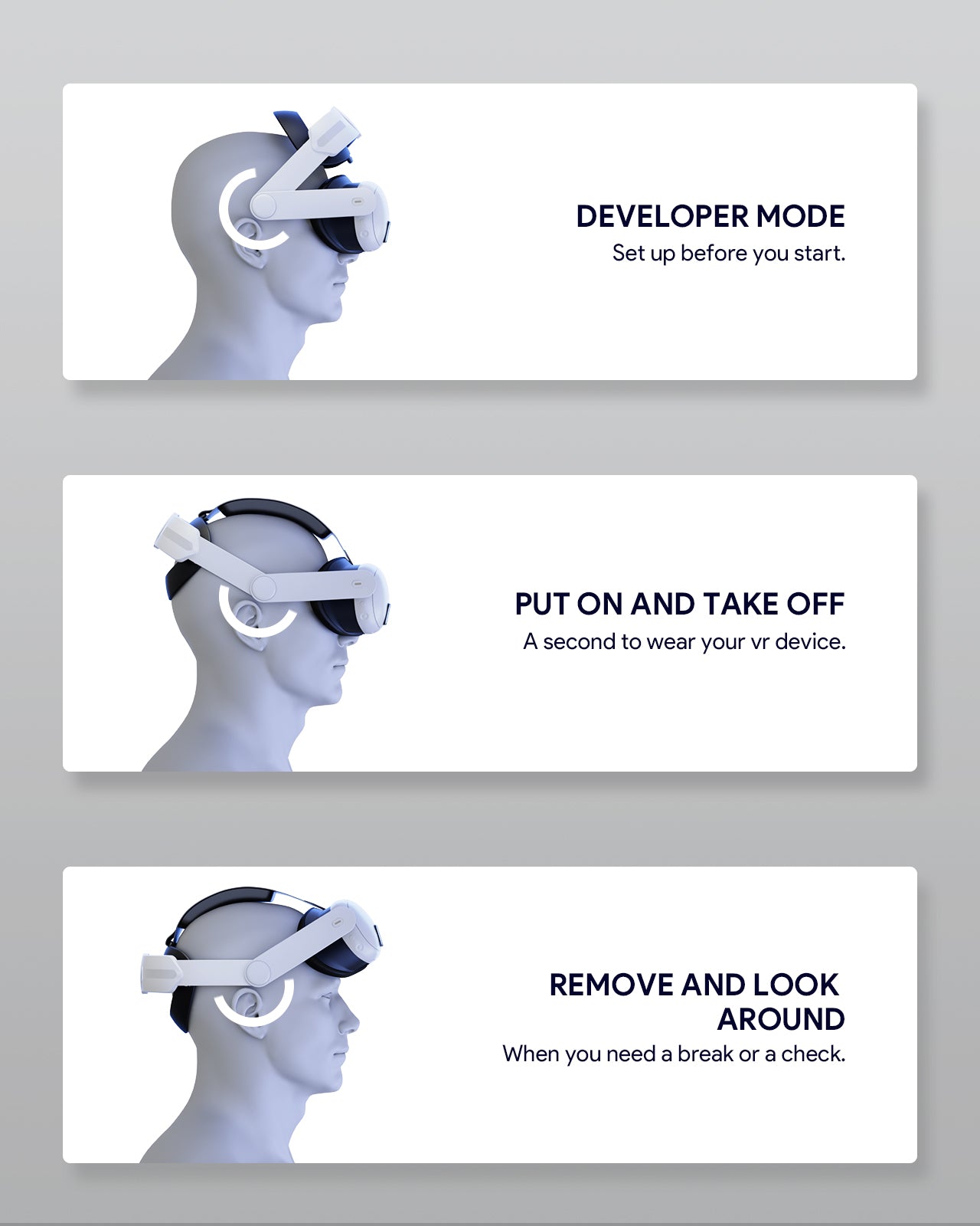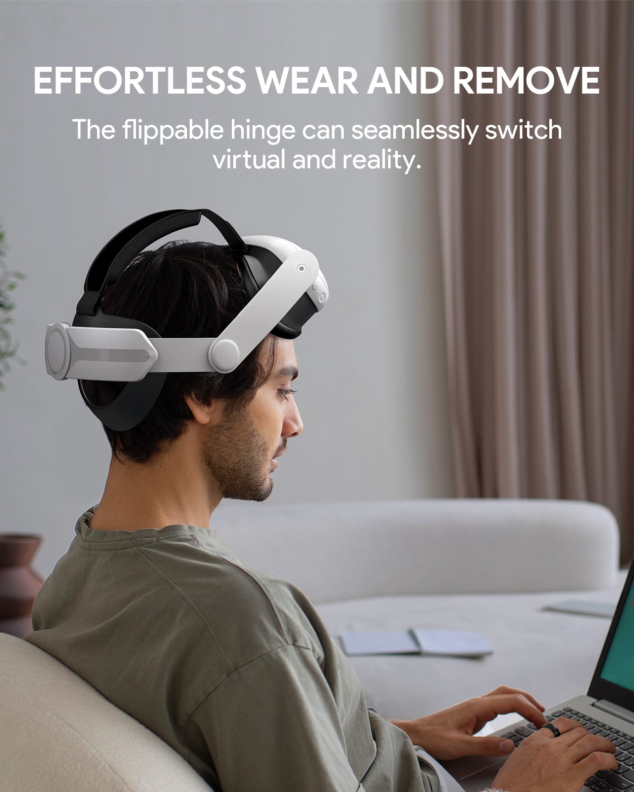 • 🕶The Biggest Difference from Elite Strap: It allows you to flip up the Quest 3 without taking off the entire head strap to check your phone or observe your surroundings. And switch between the real world and the VR world at will.