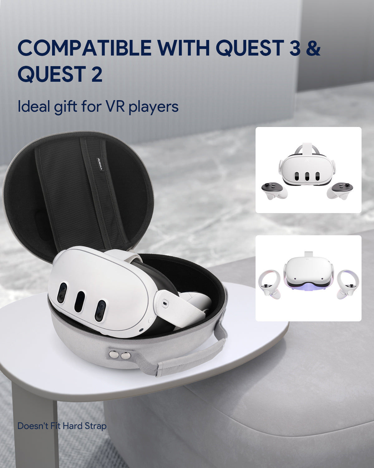 • THOUGHTFUL DESIGN: Featuring an improved dual zipper for easy access to your Meta Quest 3 gear, the EVA shell and internal removable Velcro cushion provide impact resistance and prevent VR devices from shaking, ensuring the utmost security for your valuable equipment.